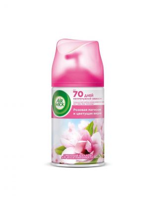 Сменный баллон к автоматическому аэрозольному освежителю воздуха. Просто вставьте аэрозоль в держатель и Air Wick Freshmatic будет автоматически распылять свежий, легкий аромат в Вашем доме. Широкая палитра ароматов на любой вкус. Характеристики: Объем: 250 мл. Аромат: розовая магнолия и цветущая вишня.