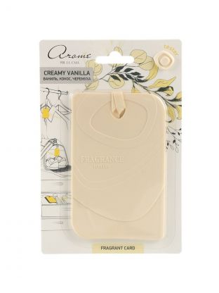 Ароматизатор Fragrant Card отлично подходит для ароматизации малых пространств: комод с бельем, шкаф с вещами, сумка, автомобиль и т.д. Наполнит дом приятными и изысканными ароматами. Если вам не хватает положительных эмоций и хорошего настроения, аромат Creamy vanilla - точно то, что вам нужно! Не выделяет токсичных веществ, благодаря чему безопасен для здоровья. Ноты аромата: ваниль, кокос, черемуха.