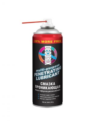 Многофункциональная проникающая смазка Decorix предназначена для смазывания подвижных механизмов и деталей, а также для эффективной защиты от влаги и коррозии металлических поверхностей. Применяется для обработки шестерёнок, петель дверей, замков, цепей передач, слабонагруженных подшипников и т. п. при уходе за автомобилем, в быту и промышленности. Устраняет скрип, трение и обеспечивает плавность хода подвижным деталям. Глубоко проникает в заржавевшие резьбовые соединения обеспечивая их подвижность. Образует защитную плёнку, препятствует образованию коррозии и окислению. Вытесняет влагу из труднодоступных мест и с металлических поверхностей, обеспечивая длительную консервацию. Предотвращает растрескивание и старение резиновых уплотнителей дверей и окон. Безопасно для пластиковых, деревянных, хромированных и окрашенных поверхностей. Способ применения: Перед использованием баллон тщательно встряхнуть в течение 1 минуты. Оптимальная рабочая температура баллона от +10°С до +25°С. Для обработки труднодоступных мест и точности нанесения используйте прилагаемую к баллону трубочку. Распылить смазку на обрабатываемую поверхность тонким слоем и дать впитаться. При необходимости повторить обработку. При нанесении смазки на резиновые уплотнители, необходимо протереть их мягкой тканью через 5 минут.