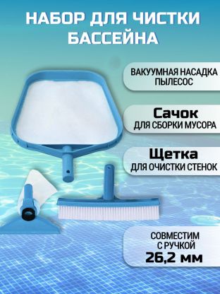 Покупка этого набора обеспечит чистоту и гигиену бассейна, что особенно важно для здоровья и комфорта. Экономьте время и силы, доверяя профессиональному уходу от Intex. Наслаждайтесь беззаботным отдыхом в чистом бассейне, не беспокоясь о трудоемкой уборке. Этот набор станет вашим надежным партнером в поддержании идеальной чистоты и порядка.