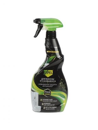 Чистящее средство для ванны и санфаянса Expel эффективно удаляет мыльный налёт и известковые отложения. Спрей создан на основе полимеров, которые создают невидимый защитный слой, препятствующий образованию новых пятен и разводов. Этот слой не дает остаткам воды собираться в капли. Вода ровным слоем сходит с поверхности, что обеспечивает равномерное высыхание без пятен и разводов. Поверхность дольше остается чистой и легче моется при повторной уборке. Характеристики: Тип: средство для ванны и санфаянса. Особенности: антиналет, невидимая защита. Объем: 600 мл. Преимущества: Не повреждает эмаль и металлические поверхности. Легко и быстро устраняет мыльный и известковый налет. Препятствует образованию пятен и нового налета. Специальная насадка-спрей позволяет равномерно наносить средство на поверхность, обеспечивая более эффективное и экономичное использование продукта.
