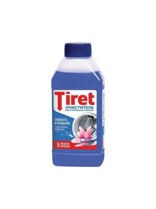 Средство для стиральных машин Tiret комплексно очищает стиральную машину. Для наилучшего результата следуйте инструкции: убедитесь, что внутри стиральной машины нет белья. Открутите крышку. Добавьте небольшое количество средства на губку и протрите отсеки для моющего средства и ополаскивателя. Залейте остаток жидкости в отсек для моющего средства. Запустите температурный режим 60 °С. Рекомендуется запускать 2 пустых цикла в год при температурном режиме 60 °С, используя каждый раз 1 бутылку. Меры предосторожности: храните в недоступном для детей месте, вдали от продуктов питания и напитков. Избегайте попадания в глаза и на кожу. В случае попадания в глаза незамедлительно промойте их большим количеством воды и обратитесь к врачу. Вымойте руки после использования. При чувствительной коже используйте защитные перчатки. Не глотать. Характеристики: Тип: жидкость. Эффект: антибактериальный, устранение известкового налета, устранение неприятных запахов. Назначение: для стиральных машин. Особенности: универсальное средство, эффективен в холодной воде. Содержит: кислоту. Аромат: цветочный. Состав: 15% или более, но менее 30% лимонная кислота, менее 5% хлорсодержащий отбеливатель и неионогенные ПАВ, ароматизатор. Преимущества: Устраняет известковый налет, накипь и неприятный запах. Удаляет мыльные разводы. Обеспечивает гигиеническую чистоту. Защищает стиральную машину. Класс опасности: 4.
