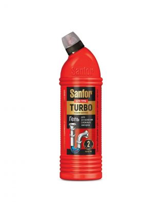 Sanfor Turbo - мощный гель для прочистки труб от засоров, который действует быстро и эффективно. Это уникальное средство разработано специально для удаления пробок и неприятных запахов, вызванных остатками пищи, жира и волос в канализационных системах Вашего дома. Способ применения: аккуратно налить гель (250 мл) в сливное отверстие канализационной трубы. Не смывать в течении 2-15 минут. При сильных засорах оставить на большее время. Промыть сильной струёй воды. При необходимости обработку повторить. Характеристики: Средство: гель. Эффект: устранение засоров. Назначение: для слива раковин, для труб, универсальное. Особенности: антибактериальное, концентрат. Упаковка: бутылка пластиковая. Содержит: кислоты, щелочь. Не содержит: нефтепродукты. Состав: _ 5%, но Преимущества: С помощью Sanfor Вы сможете осуществить очистку труб на кухне, в ванной или туалете всего за несколько минут. Его мощная формула растворяет жир, устраняет засоры и эффективно очищает канализацию. Быстро и безопасно удаляет даже самые сложные пробки, дезинфицируя поверхности, уничтожая бактерии и микробы.