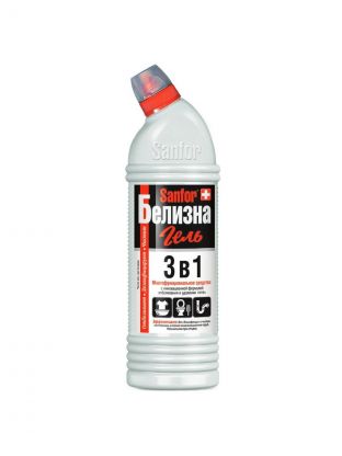 Со временем все белые вещи теряют свою белизну и приобретают серовато-желтый оттенок, белые волокна ткани впитывают частицы грязи и пота и темнеют. Тусклый и серый цвет сантехники тоже является огромной проблемой. Как вернуть вещам первозданную белизну, а поверхностям белый цвет? Часто для этого хозяйки используют такое проверенное временем средство как белизна. Белизна – это хлорсодержащее средство для отбеливания и дезинфекции белья и мытья поверхностей. Sanfor Белизна 3 в 1 - это густой гель с инновационной формулой отбеливания и удаления загрязнений. Его добавляют при замачивании белья, стирке, используют, чтобы навести блеск и чистоту в ванной и туалете, прочистить стоки и сливы труб. Пусть в вашем арсенале борьбы за чистоту дома будут самые эффективные средства и помощники! Характеристики: Тип: отбеливатель. Объем: 700 мл. Назначение: для белого белья, мойка и дезинфекция. Форма выпуска: гель. Особенности состава: хлорсодержащий. Страна происхождения: Россия. Преимущества: Подходит для частого применения. Идеально отбеливает поверхности, чистит и дезинфицирует. Экономичный расход достигается благодаря густой консистенции. Гель равномерно распределяется и не стекает с наклонных поверхностей. Качество и свойства продукта сохраняются в течение всего срока годности. Флакон с антискользящей поверхностью, удобным дозатором и блокиратором крышки «Защита от детей». Гель обладает антибактериальными свойствами и надолго устраняет неприятные запахи.