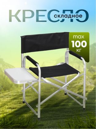 Кресло складное 55х60х82 см, черно-зеленое, ткань, со столиком, 100 кг, Green Days, YTDC024