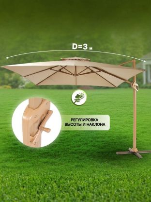 Зонт садовый 3х3х2.4 м, бежевый, с регулировкой наклона, C080008