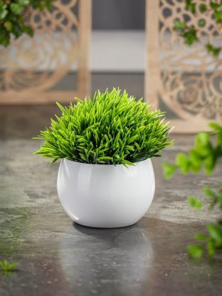 Декоративная трава в кашпо с легкостью впишется в классическую гостиную или новомодную кухню. Изделие выглядит аккуратно и довольно реалистично.