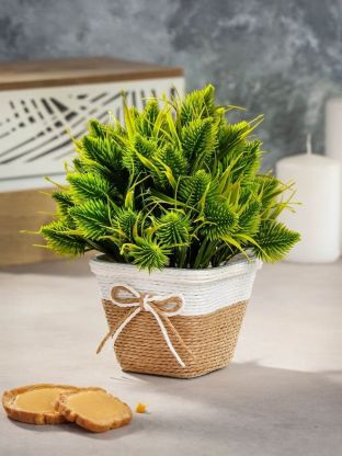 Композиция выполнена из пластмассы (растения) и керамики (кашпо), что гарантирует прочность, износостойкость и эстетичный внешний вид.