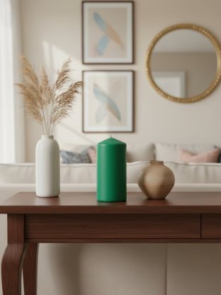 Декоративная свеча колонна Bartek Candles Вельвет — это стильное решение для создания уюта и праздничной атмосферы. Благодаря насыщенному изумрудному цвету и бархатистой поверхности, свеча гармонично впишется в современные интерьеры, станет центральным элементом новогоднего декора или оригинальным подарком. Часто спрашивают, как выбрать свечу для подарка или для дома: выбирайте модели с хлопковым фитилём и без запаха — они безопасны и универсальны в использовании.
