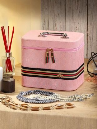 Шкатулка-кейс для украшений и косметики, полимер, 21.5х15х13 см, пудровая, Y4-5320-1