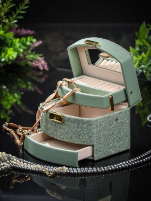Подходит ли эта шкатулка для хранения серебра или золота? Да, благодаря гладкой поверхности и отсутствию впитывающих элементов, ваши украшения будут защищены от пыли и окисления. Прозрачное стекло позволяет быстро находить нужный аксессуар, а зеркало — сделать примерку без лишних движений.