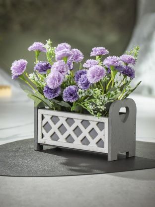 Цветок искусственный декоративный Композиция в деревянном кашпо, 19х8х7 см, фиолетовый, Y4-7932