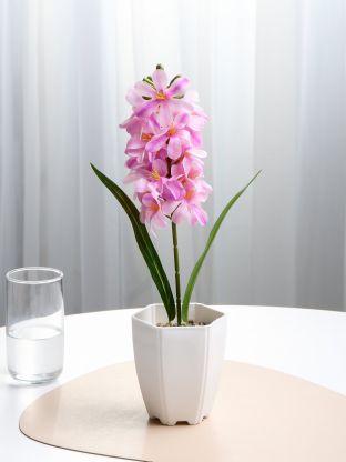 Размер декоративного цветка составляет 15х10х7 см. Кашпо устойчивое, не занимает много места и подходит для размещения на столе, полке или подоконнике.