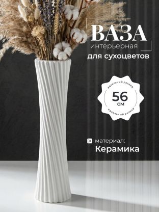Ваза для сухоцветов керамика, напольная, 56х13.5 см, Спираль, Y4-3235, белая