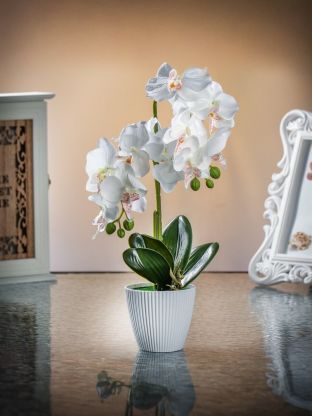 Не требует полива, пересадки и ухода, не вызывает аллергию, сохраняет свежий вид круглый год, подходит для любого помещения.