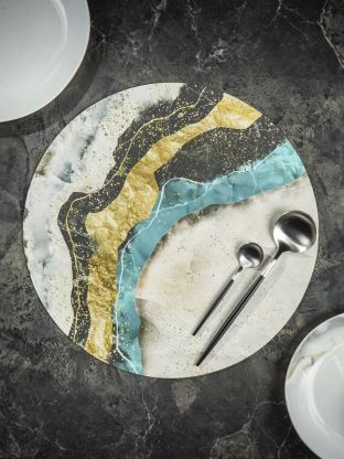 Салфетка для стола экокожа, 35 см, круглая, принт, Y4-8327