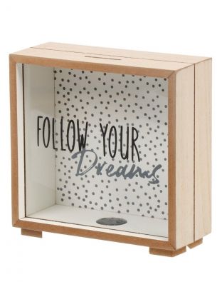 Модель с клапаном удобна для регулярного использования: не нужно разбивать копилку, чтобы достать деньги. Прочный МДФ защищает содержимое и сохраняет аккуратный вид даже при частом открытии.
