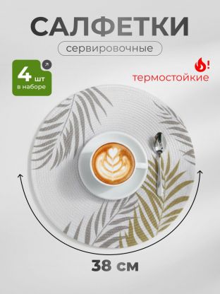 Набор салфеток полимер, 38х38 см, круглый, 4 шт, для стола, Листья, МП, Y4-9133