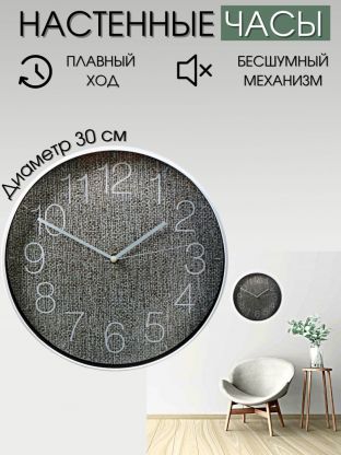 • Удобный размер: диаметр 25 см, кварцевый механизм — точность и бесшумная работа на долгие годы