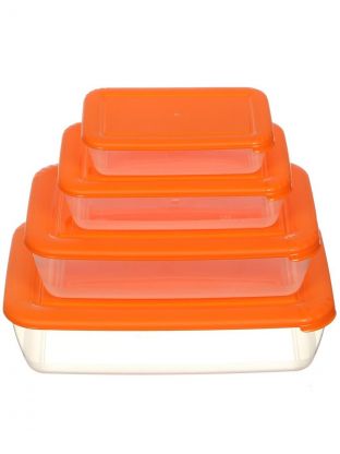 В комплекте 4 контейнера объёмом 0.46, 0.95, 1.5 и 2.5 литра, каждый высотой 10 см, с крышками, цвета в ассортименте.