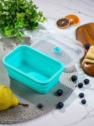 Контейнер складной 0.8 л голубой: компактное хранение, герметичность и универсальность для дома, офиса и дачи. Удобно брать с собой, легко мыть.
