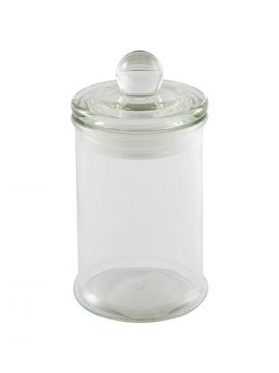 Объём — 0.5 литра, размеры: 9.2х9.2х10 см. Банка круглая, с гладкой текстурой и прозрачными стенками, крышка — пластиковая, закручивающаяся.