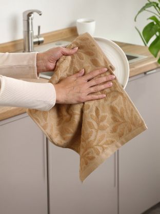 Набор полотенец кухонных 2 шт, 30х50 см, махровый, 100% хлопок, 400 г/м2, Silvano, Листья, бежевый, Узбекистан