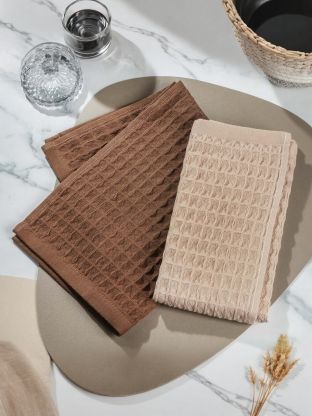 Набор полотенец кухонных 2 шт, 40х50 см, вафельный, 100% хлопок, 300 г/м2, Silvano, Лея, бежевый, коричневый, Узбекистан