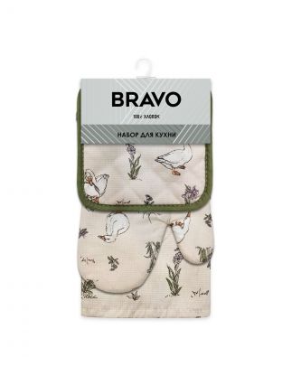 Практичный набор для кухни Bravo: варежка, прихватка и полотенце — стиль Цветы, 3 размера для дома, дачи и подарка. Защита рук и уют в каждом движении.