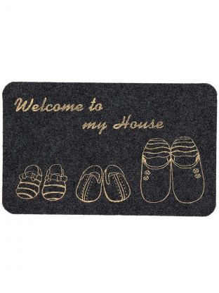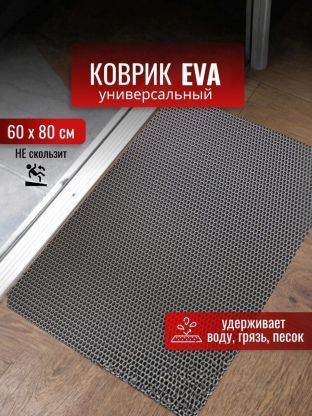 Размер коврика — 45х75 см. Он подходит для большинства стандартных дверных проемов, эффективно задерживая грязь с обуви при входе.