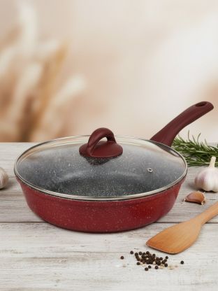 Литая сковорода Горница Рубин 28 см с антипригарным покрытием и крышкой: готовьте без масла, легко мойте, экономьте время и здоровье каждый день.