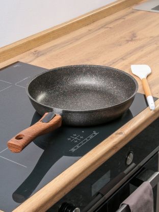 Сковорода Kukmara Granit Ultra Induction 28 см — это выбор для тех, кто ищет надёжную посуду с антипригарным покрытием для ежедневного использования. Литой алюминий обеспечивает равномерное распределение тепла, а инновационное покрытие Granit Ultra Induction позволяет готовить с минимальным количеством масла. Если вы спрашиваете, как выбрать сковороду для индукционной плиты или для здорового питания, обратите внимание на эту модель: она совместима со всеми типами плит, включая индукционные, и сохраняет полезные свойства продуктов.