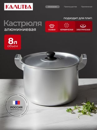 Выбирайте кастрюлю Калитва 8 л, если цените удобство, надёжность и выгодную цену. Закажите сейчас — получите гарантию 24 месяца и быструю доставку по России.