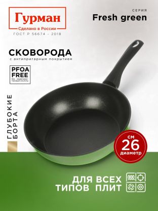 Рекомендуем купить недорого сковороду для дачи или дома — коллекция Гурман Fresh Green сочетает стильный дизайн и практичность. Оформите заказ онлайн и оцените качество профессионального кухонного инвентаря с гарантией производителя.