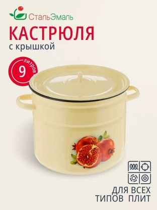 Эмалированная кастрюля объёмом 9 литров от бренда СтальЭмаль — это оптимальный выбор для тех, кто ищет долговечную посуду для индукционных, газовых, стеклокерамических и электрических плит. Корпус из стали с эмалированным покрытием предотвращает появление коррозии и облегчает уход: кастрюлю можно мыть в посудомоечной машине, не опасаясь потери цвета или блеска. Благодаря отсутствию антипригарного слоя и выпускного клапана, изделие сохраняет натуральный вкус блюд и подходит для приготовления заготовок на зиму, варки компота или супа для всей семьи.
