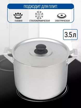Алюминиевая кастрюля Калитва 6 л — оптимальный выбор для семьи: легкая, вместительная, подходит для газовых и электрических плит. Закажите с доставкой!