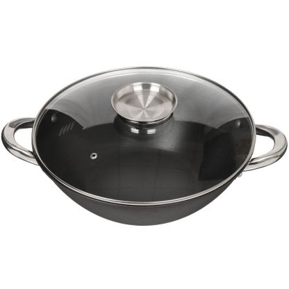 • Стеклянная крышка с ручкой из нержавеющей стали.