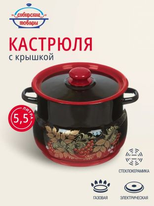 Кастрюля эмалированная сталь, 5.5 л, крышка сталь, сферический, Сибирские товары, С1917.38
