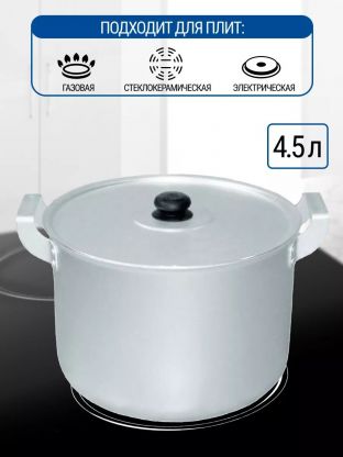 Если вы ищете, какую кастрюлю выбрать для супа, макарон или пельменей, обратите внимание на алюминиевую кастрюлю Калитва 4,5 л. Её однослойное дно толщиной 1,5 мм обеспечивает равномерный прогрев, а отсутствие антипригарного слоя позволяет безопасно использовать металлические аксессуары. Часто спрашивают: «Подходит ли для индукционной плиты?» — нет, эта модель рассчитана на газовые, электрические и стеклокерамические поверхности.