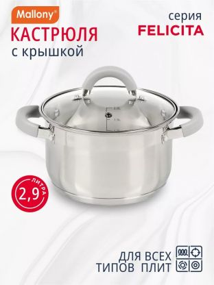 Выберите кастрюлю Mallony Felicit_ 2.9 л — выгодное решение для дома, дачи или в подарок. Закажите сейчас и получите надежную посуду с гарантией производителя 12 месяцев.