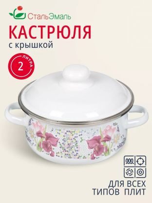 Эмалированная кастрюля 2 л СтальЭмаль «Мозаика белоснежная» — идеальный выбор для дома и дачи: подходит для индукционных плит, долговечна, легко мыть.