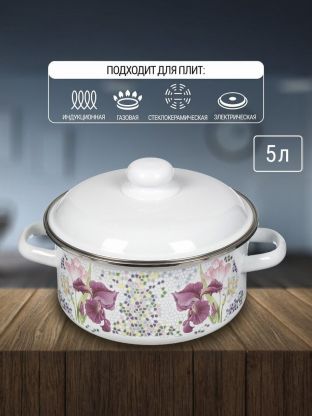 • Практичность — объём 5 л, прочная эмалированная сталь, крышка из стали, гарантия 24 месяца