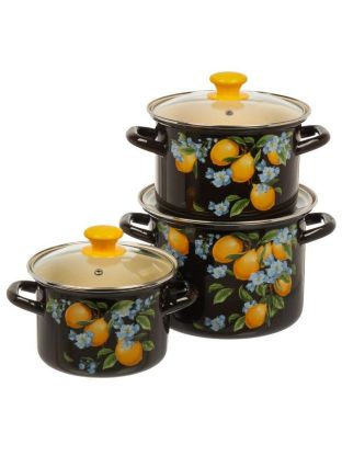 Набор эмалированной посуды 3 предмета «Яркие лимоны-5-1-Люкс»: идеальное решение для кухни, дачи и подарка. Долговечность, стиль и универсальность по выгодной цене.
