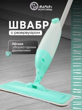 Швабра с распылителем Марья Искусница - это улучшенная конструкция швабры, облегчающая уборку пола, позволяющая одновременно смачивать пол и протирать его насухо, удаляя все загрязнения. На швабре закреплен резервуар для воды или моющего средства, которое легко распыляется с помощью рычага-распылителя, расположенного на ручке швабры. Швабра изготовлена из высококачественного ударопрочного пластика, тканевая насадка - микрофибра, которая хорошо впитывает жидкости, не оставляет разводы и очень долговечна в использовании. Конструкция швабры разборная, в разобранном виде она компактна, занимает мало места, поэтому хранить ее очень удобно.