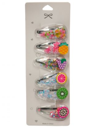 Набор заколок 7.5х1.5х21 см, 6 шт, металл, для волос, фруктовый микс, A110090