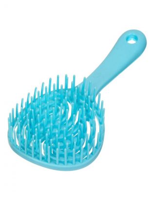 Расческа подходит для длинных локонов и коротких причесок. Ее польза для здоровья и красоты волос очевидна: она бережно расчесывает мокрые волосы, не травмирует кожу, не вызывает аллергии, предотвращает спутывание прядей, улучшает микроциркуляцию крови у волосяных фолликулов. Характеристики: Материал: пластик. Размер: 9.5х19 см. Цвет: голубой.