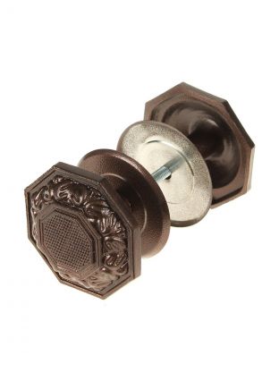 Металлическая дверная ручка имеет две половины. Крепится на дверь в сквозное отверстие одним удлиненным винтом. Невероятно удобная и многофункциональная ручка монтируется без лишних хлопот и отличается долголетней службой. Ручка предназначена для дверей любой толщины. Характеристики: Материал: металл; Цвет: антик. Дополнительная информация: Диаметр шпильки: М6. Длина шпильки: 65-67 мм. Диаметр накладки на дверь: 40 мм. Ручка предназначена для использования внутри помещения.