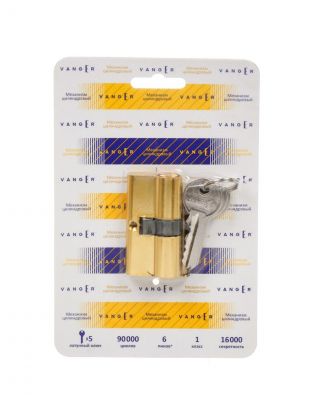 Личинка замка двери Vanger, EL-60-C-G, 29690, 60 мм, с заверткой, золотая