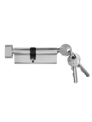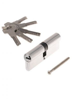 Личинка замка двери Vrata, ЦМВ 80(35в/45), 208226, 80 мм, с заверткой, хром, алюминий, 3 ключа