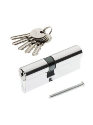 Личинка замка двери Trodos, ЦМВП, 209216, 80 мм, с заверткой, хром, блистер, 5 ключей
